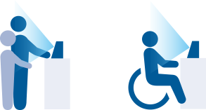 高身長~低身長、車椅子での利用でも顔認証できます。