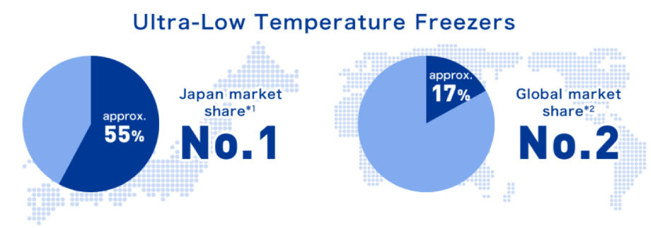 Our long history of manufacturing, sales, support and service excellence has earned us the respect of our customers throughout the world. We apply strict quality management in our global manufacturing system including the core manufacturing sites in Japan. Our products including preservation equipment (Laboratory Freezers, Ultra Low Freezers) and incubation equipment (Cell Culture Incubators, Microbiological Incubators) are now being used in various customers & facilities such as universities, research laboratories, pharmaceutical companies and hospitals in 110 countries worldwide.