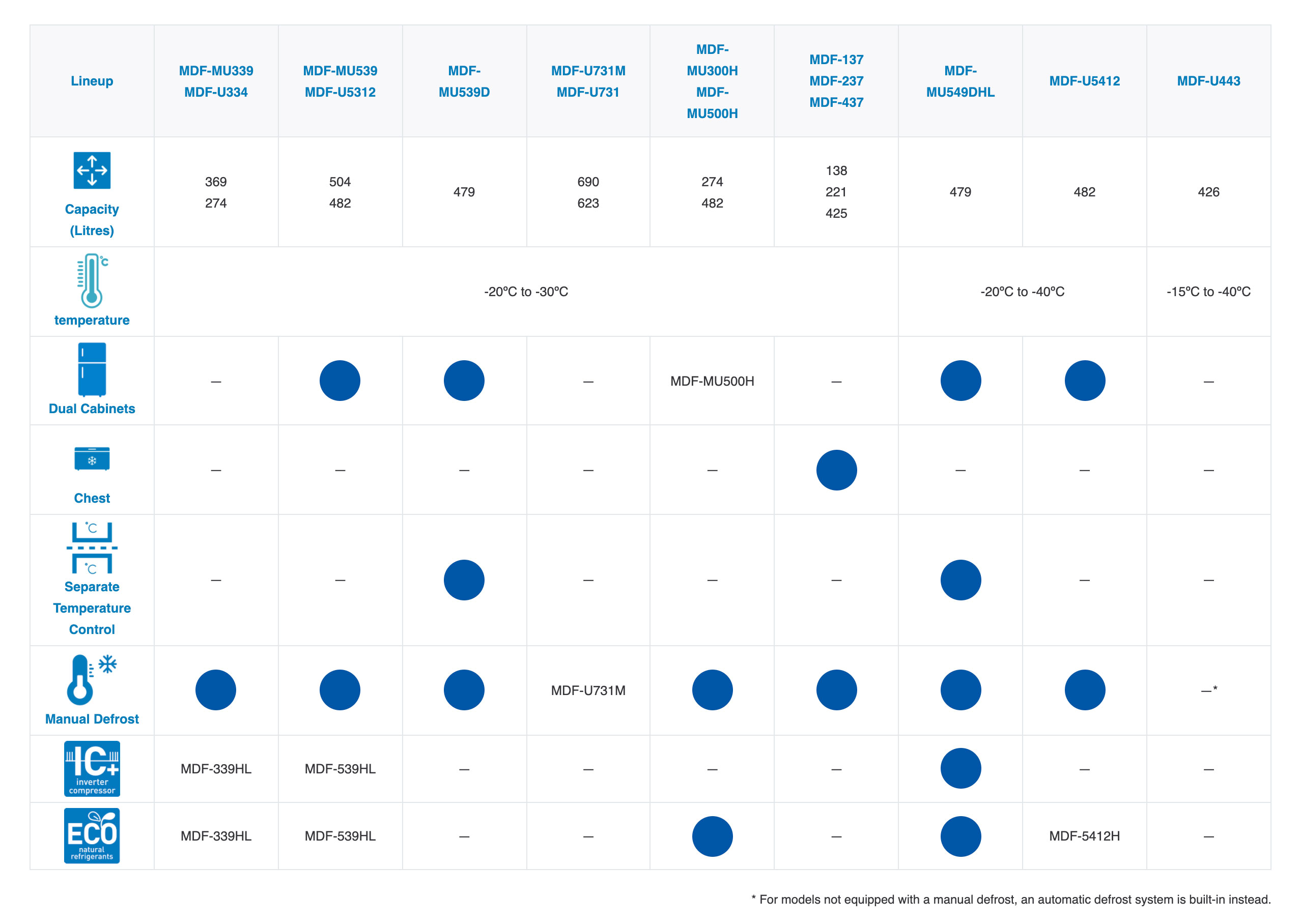 - 20℃ to -30℃ / MDF-MU549DHL: -20℃ to -40℃