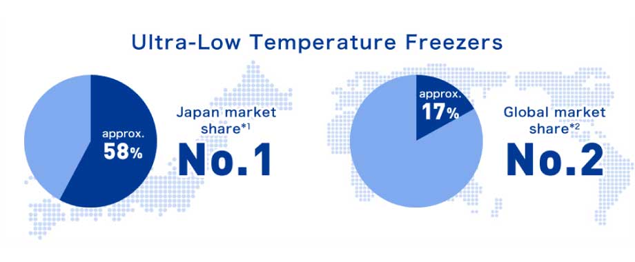 We launched Life Science business in 1966. Our products including preservation equipment (Laboratory Freezers, Ultra Low Freezers) and incubation equipment (Cell Culture Incubators, Microbiological Incubators) are now being used in various customers & facilities such as universities, research laboratories, pharmaceutical companies and hospitals in 110 countries worldwide. For more information, please refer to customer's testimonial.