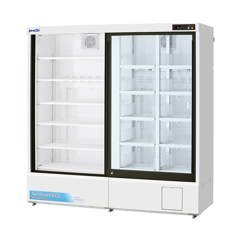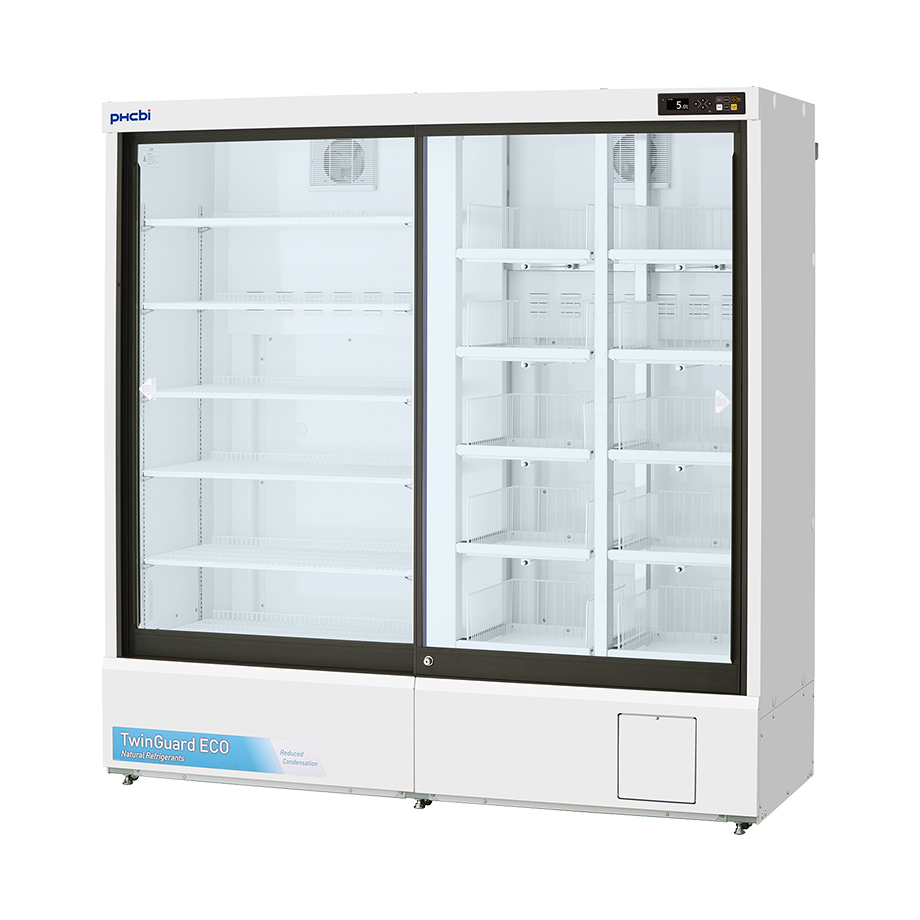 Unser pharmazeutischer Kühlschrank Twinguard MPR-S1201RXH-PE mit Schiebetür bietet eine höchst zuverlässige Temperaturregelung, um Proben, Reagenzien und Pharmazeutika sicher aufzubewahren. Er kombiniert Kältemittel aus natürlich vorkommenden Substanzen mit Wechselrichter-betriebenen Kompressoren für einen um ca. 77 % niedrigeren Stromverbrauch als bei bisherigen Modellen.