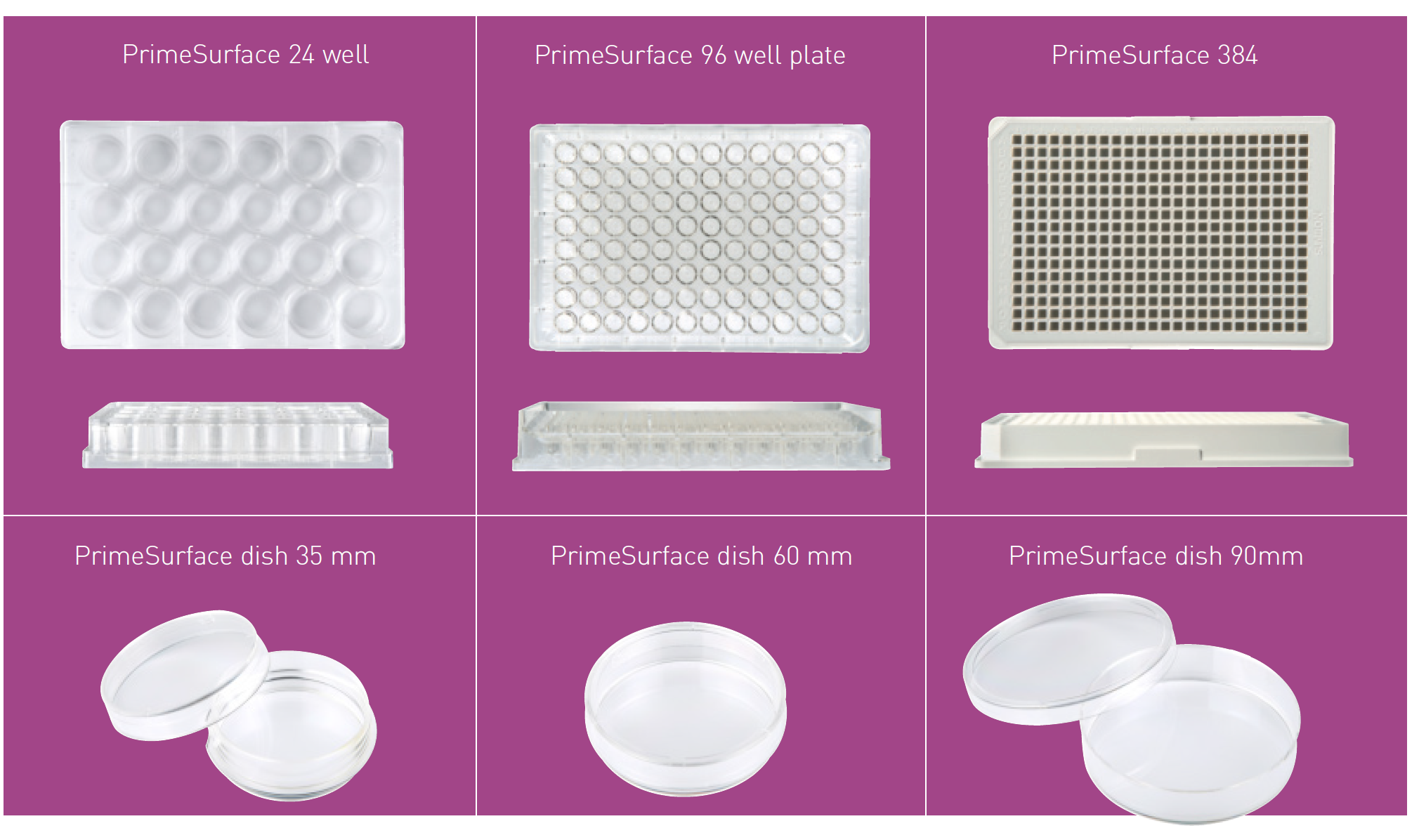 PrimeSurface series are coated with a unique ultra-hydrophilic polymer that covalently bound to plastic surface, and effectively inhibits cell attachment without cytotoxic and material degradation. The superior coating technologies and manufacturing processes offer uniform spheroid/EB formation and smooth surface to obtain clear cell images.