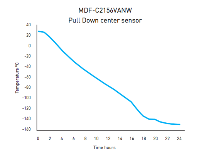 Le MDF-C2156VANW cryogénique utilise des réfrigérants binaires mixtes sans HCFC. Les nouveaux panneaux d’isolation à vide et les joints de porte doubles réduisent la consommation d’énergie.