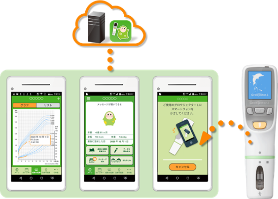 GROWJECTOR® L is a motorized drug delivery device manufactured and sold by PHC, to be used exclusively for the recombinant human growth hormone GROWJECT® subcutaneous 6mg and 12mg*4 treatment which is manufactured and sold by JCR. The device can record patient injections (dosing history), which are stored in the device memory. Using the Melon Nikki™ app, the dosing history stored in GROWJECTOR® L can be seamlessly sent via Wi-Fi to a smartphone, allowing patients to easily check detailed dosing history including injection time and frequency without the need for manual input. Patient height and weight data saved in the app enables users to generate a growth curve that can be stored in the cloud along with their dosing history. The patient and their family can check on treatment status and their growth record at any time, as well as share information with doctors during consultations through their smartphone device screen. The app also has a fun feature*5 designed to reduce injection anxiety and therefore improve medication adherence.