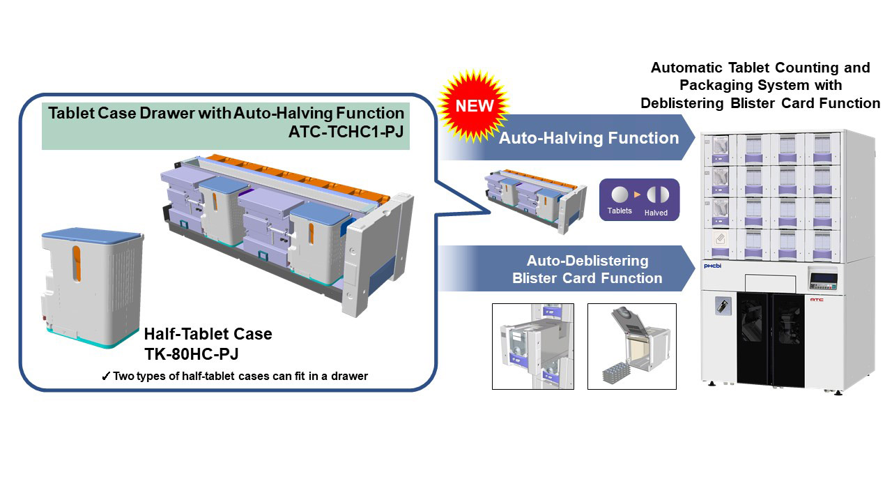 TOKYO, April 2, 2021 - PHC Corporation (headquarters: Minato-ku, Tokyo, President: Kyoji Morimoto, hereafter PHC) has today introduced the ATC-TCHC1-PJ tablet case drawer with auto-halving function and TK-80HC-PJ half-tablet case in Japan. Both are dedicated options for PHC’s Automatic Tablet Counting and Packaging System*1 (ATC) that can help to improve pharmacist workflow and provide better healthcare for patients.