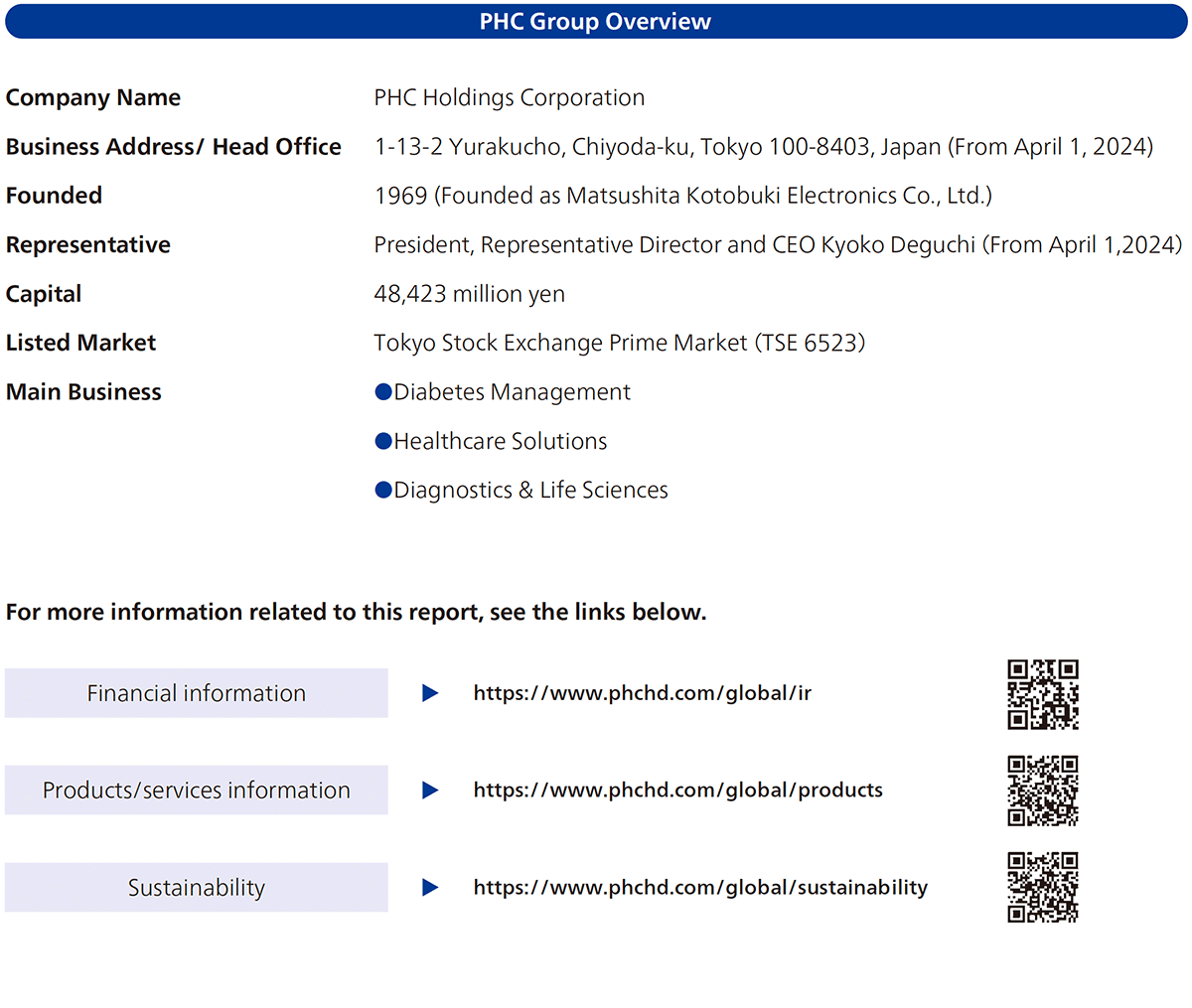 Integrated Report 2024 Data SectionCompany Overview and Stock Information PHC Group Overview and Vision PHC Group Business Strategy PHC Group Sustainability Data Section Performance Data Consolidated Financial Statements List of Main Companies Corporate Overview and Stock Information