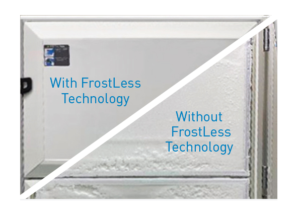 Questo miglioramento dei materiali di isolamento e della struttura, così come del telaio riscaldato della guarnizione della porta interna consente di ridurre il lavoro manuale e la frequenza di scongelamento. Inoltre, elimina la formazione di ghiaccio in aree che potrebbero comportare danni e deterioramento dei componenti del congelatore.