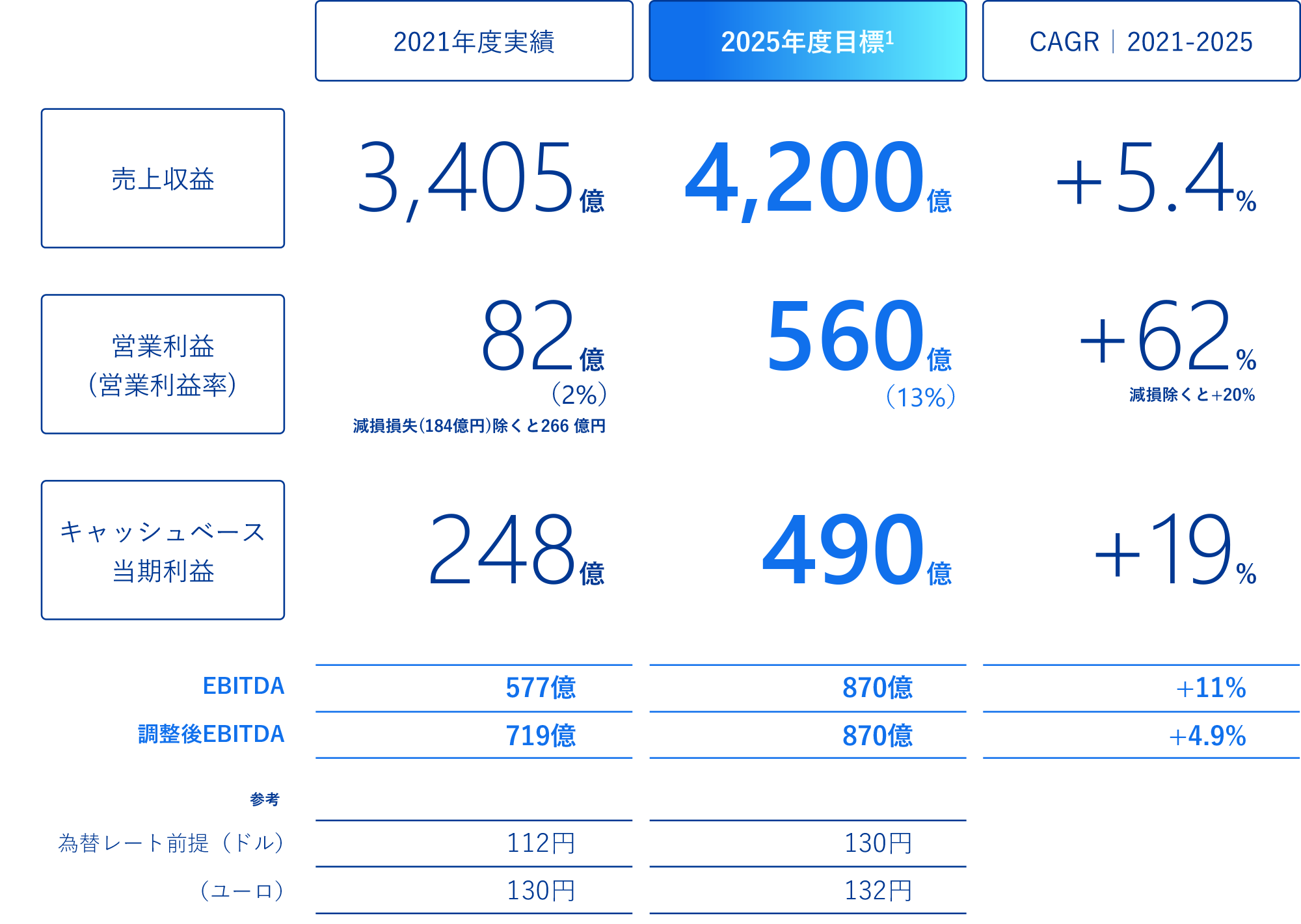- 各種指標は2024年度の見通しに対して大きく改善することを目標としています。