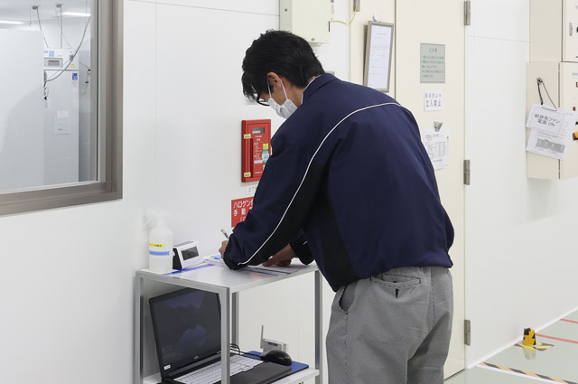 フリーザーの内部温度は、午前と午後1回ずつ、目視でモニターをチェックし、LOGBOOKに記録を書き入れる。「100台ものフリーザーを管理しているため、モニターが見やすくわかりやすいのはありがたいポイントです」と玉田氏。