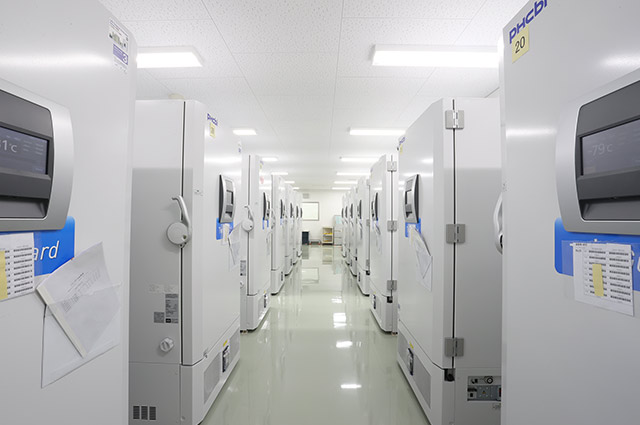 その任務に大きく貢献しているのは、棟内に設置された約100台のPHCbiの超低温フリーザーをはじめとする保存機器である。