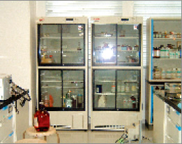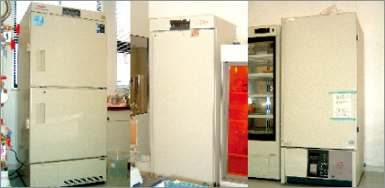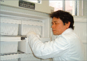 こうした数々の研究を推し進めていくうえで、食品衛生学研究室では、保存機器のプレハブ式低温室、超低温フリーザ、薬用保冷庫などをはじめ、培養機器のインキュベータ、実験環境機器のクリーンベンチなど、三洋のバイオ関連機器群が欠くことのできない役割を果たしています。