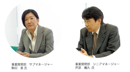 兵庫県神戸市三宮とその沖合につくられた神戸ポートアイランド、さらにその沖合には2006年2月開港予定で建設が進む神戸空港島。それらを結ぶ無人運転システムポートライナー。近未来的なシチュエーションが印象的なこのエリアに、株式会社三菱化学ビーシーエル神戸BMA研究所様があります。ここは、神戸市民の医療水準の向上と神戸経済の活性化を願って計画された、神戸医療産業都市構想に基づく医療研究と臨床の最先端が集まる知的クラスターです。BMA(バイオメディカル創造センター)の建物には十数社の各社ラボが活動しており、株式会社三菱化学ビーシーエル神戸BMA研究所様もその一角で活躍されています。シニアマネージャー/芦原義久様とサブマネージャー/駒田恵様にお話をうかがいました。