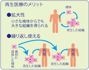 再生医療には本人の皮膚から取った検体を本人に戻すわけですから拒絶反応などの心配が少ないのは勿論ですが、その他に大きなメリットが2つあります。ひとつは拡大性で、これは再生を増殖させる事で元の検体の1,000倍くらいの大きさのものまで得られるということ。ふたつめは、再発性の皮膚病に対して、最初に採取した正常な検体を繰り返し再生することにより、長期にわたる治療に対応できるということです。