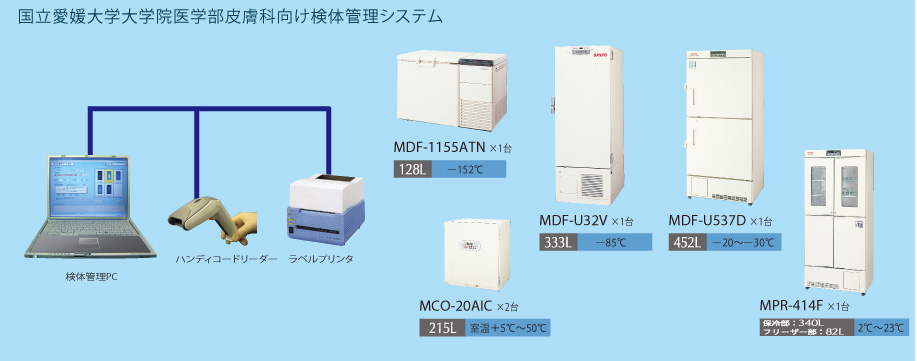 夏目漱石の「坊ちゃん」や名湯「道後温泉」で有名な愛媛県松山市の郊外、東温市に国立愛媛大学医学部の広大なキャンパスがあります。ここには医学系の教育施設と地域医療のセンターである医学部付属病院が併設され、ホームページで表明されているように、〈臨床応用を通じての社会への還元〉を大きな目的に、独創的な先端研究、社会的要請の強い研究を推進することのできる研究者の育成に努められておられます。今回は、皮膚科学研究室に導入された〈検体管理システム〉を白方裕司先生にお伺いしたレポートをお届けします。