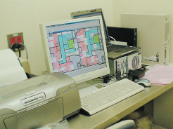多点環境モニタリングシステムのコンピュータ(中央)。