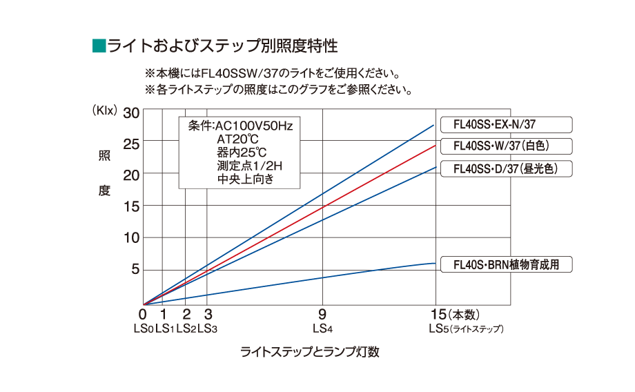 蛍光灯消灯時:0 ℃ ~ 50 ℃(周辺温度:5 ℃ ~ 35 ℃・無負荷)