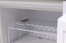取付金具のマグネットで以下のようにフリーザー室庫内網棚に貼り付けてください。本ページ上部に掲載している取付例の動画もご参照ください。