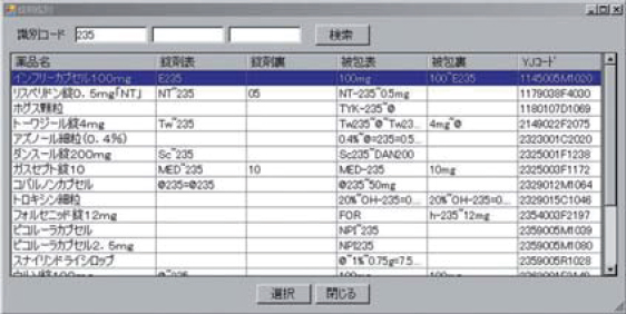 薬品名から院内採用状況、同種・同効果薬品の候補を表示させ、薬品名が不明な場合は、薬剤鑑定機能により刻印などの識別コードから薬品名を検索できます。入力されたデータは、持参薬管理表・継続確認書として印刷できます。