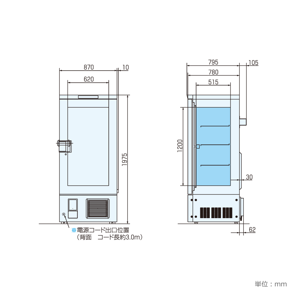 幅620㎜×奥行515㎜×高さ1,200㎜
