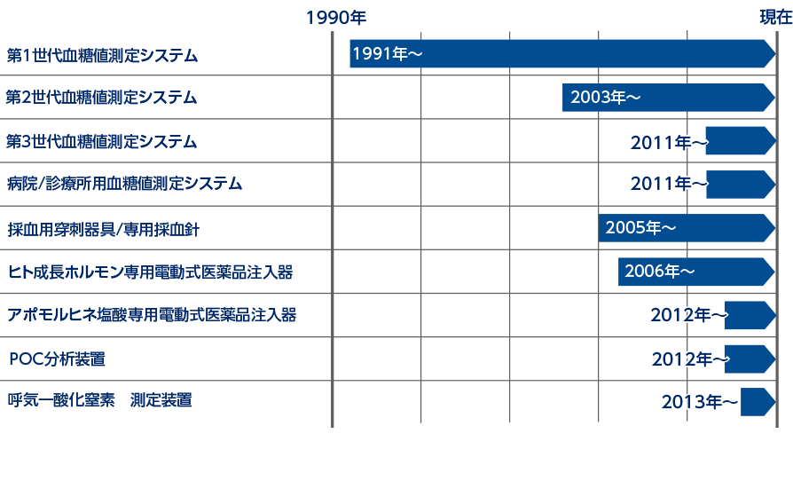 - 第1世代血糖値測定システム国内向け生産販売開始