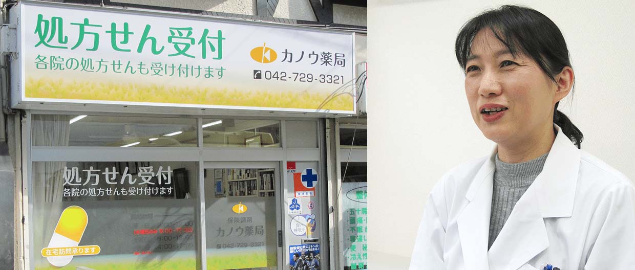 カノウ薬局は、東京・新宿駅を起点とする小田急線の玉川学園前駅の駅前に位置する。地元に根付いたかかりつけ薬局で、ほとんどは馴染みの患者。駅前という立地もあり、同薬局にはさまざまな医療機関の処方箋が持ち込まれる。1 カ月に応需する処方箋の発行元医療機関数は約130 カ所。近隣の診療所のほか、東京都心にある大学病院の処方箋も舞い込む。特定の医療機関に依存していないため、処方箋の集中率は30%を切るという。