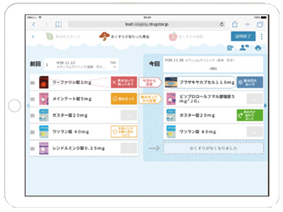 また、前回のお薬を「見える化」して、処方箋の変更点を確認しながら 服薬指導できるので、患者サービス向上に寄与します。