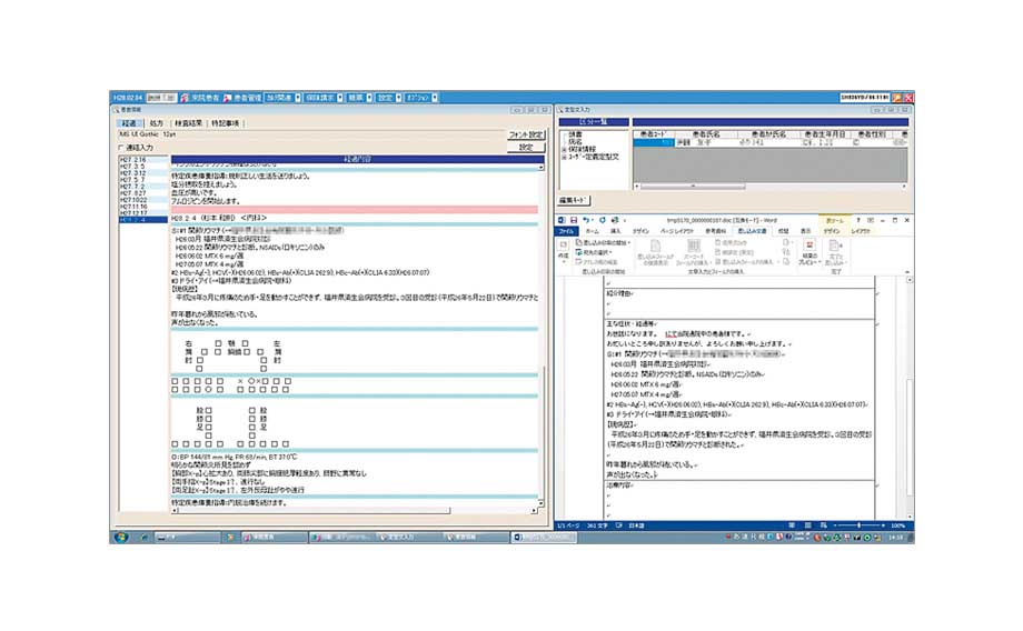 紙カルテのときは、全身の関節所見の記載に部位ごとのハンコを使っていたといいますが、そうした手間のかかる作業をMedicom-HRIIIのテンプレート入力でスピーディーに記載。多彩なMedicom-HRIIIの入力支援機能により、丁寧な診察を維持しつつ、効率的なカルテ記載を実現できていると言います。