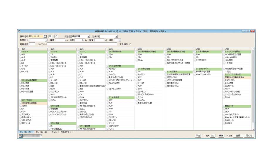 血液検査など、それぞれの検査で項目をチェックするだけで検査指示が完了。シート入力は処方せん発行でも、約束処方など簡単に設定・指示できると評価。