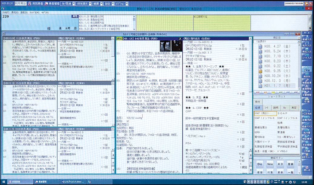「使った時のフィーリングが良かった」という秋月先生は、画像ファイリングシステムとの連携で「Medicom-HRV」に検査画像をサムネイルで表示させ、迅速な診療に役立てています。さらにエコー、心電図、血液検査などの結果も「Medicom-HRV」ですべて表示し、診察室にいながら患者さんの状態を把握することができます。