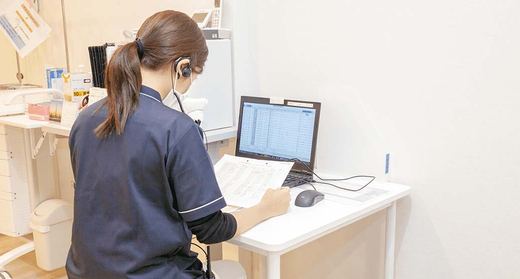 また、当院では事務スタッフも看護師もメディカルクラークと呼び医療に関わる業務に従事しており、電子カルテの入力などを行います。山岡先生は、「事務の方が電子カルテ業務を行うことで、会計やレセプト業務もスムーズにできると思います。これも医事一体型の『Medicom-HRV』の良さだと思います」と導入効果の高さを感じています。