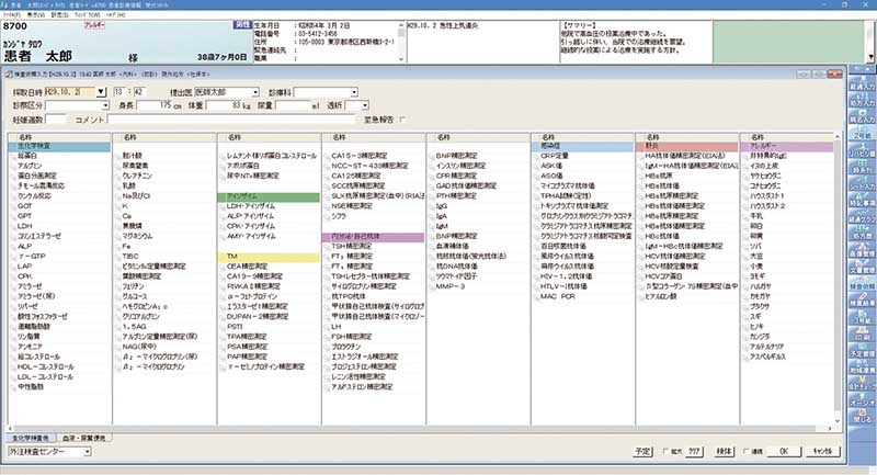 「例えばLSIMは、今日、採血の検体を回収すると、明日の朝には電子カルテ『Medicom-HRシリーズ』にその検査結果が送信されています」(下図参照)。「患者さんにしてみれば、昨日当クリニックで行った採血が今日の午前中には分かるので驚きますね。今までは検体を回収後は翌日か翌々日に検査結果の用紙とUSBを届けてもらっていましたから大きく変わりました」