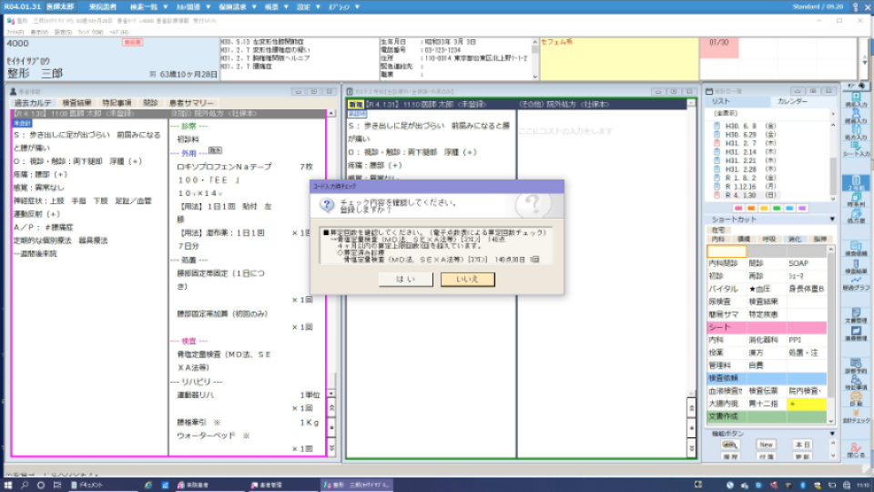 医事一体型電子カルテのため、カルテ入力時にリアルタイムでチェックがかかります。後から修正する必要がなくなり、スムーズなカルテ作成と時間削減が可能になります。