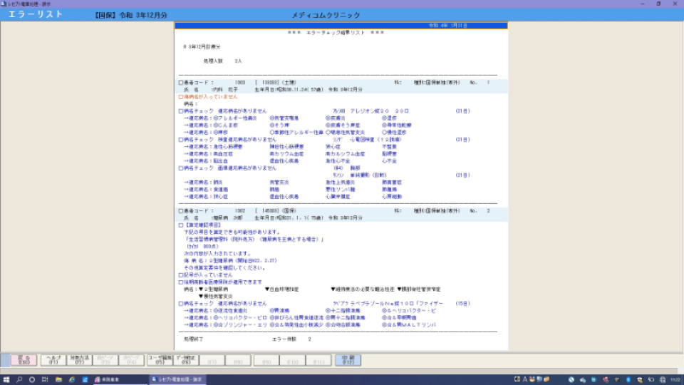 レセプトチェック時、エラーリスト一覧の画面からワンクリックで該当カルテを開いて内容の修正ができるため、効率のよいレセプト作業が可能になります。紙に印刷して確認したい場合、エラーが生じたレセプトに絞って印刷も可能です。