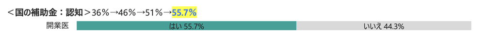 認知率は前回調査から55.7%と約4%上昇し、過半数の開業医が補助金制度を認知していることがわかりました。