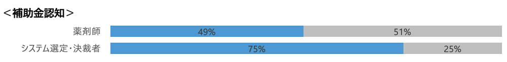 約半数の薬剤師が補助金を認知しており、システム選定・決定者に至っては70%以上が認知していました。