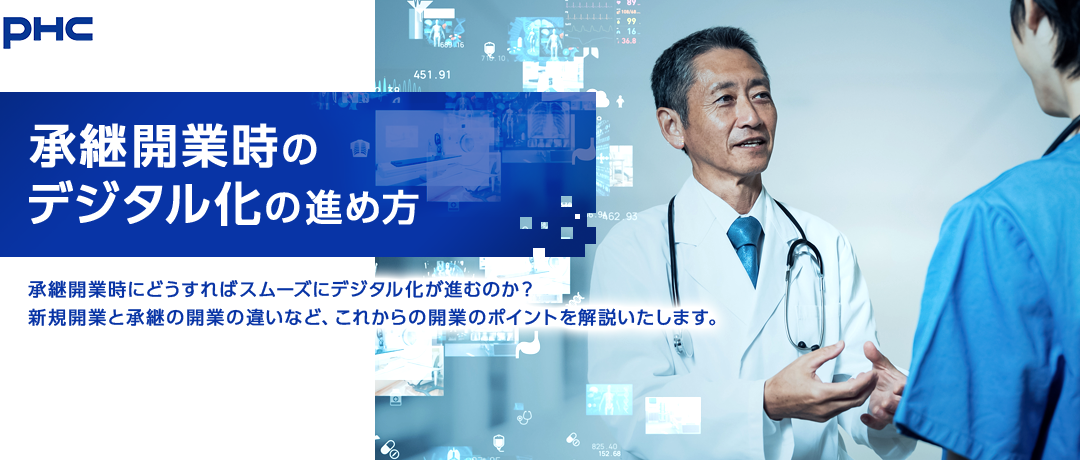 開業医の高齢化が進む中、承継開業、新規開業についてのメリット、デメリットを解説。継承時の医療機器の導入方法やシステム、スタッフ等、継承開業のノウハウとデジタル化、クリニックの認知活動等、開業のコツをご説明します。 是非とも参考にしてください。