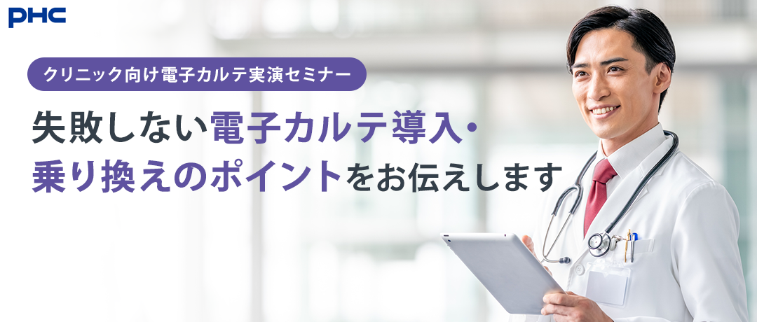 そこで、一般診療所向け電子カルテシステム/医事会計システムシェアNo.1(※1)のメディコムだからこそお伝えできる電子カルテ導入のポイントを、実際のデモ画面をお見せしながら具体的にご説明致します。