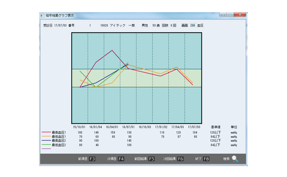 検査結果・経年結果を多彩かつ明瞭に表示し、面談の手助けを行います。