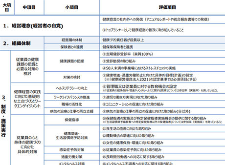 健康経営優良法⼈2021(⼤規模法⼈部⾨※)の認定基準