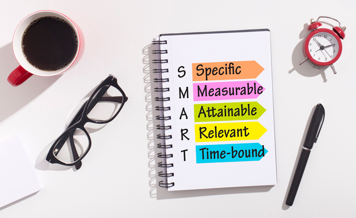 コスト削減の目的を達するため、全院と各部署の取り組み内容を決め、行動計画と数値目標を立てます。確実に目標達成するためには、目標設定時に「5つの要素」を決めて各部署で共有して実行すると効果的です。5つの要素は、その頭文字から「SMART」の原則と呼ばれます。