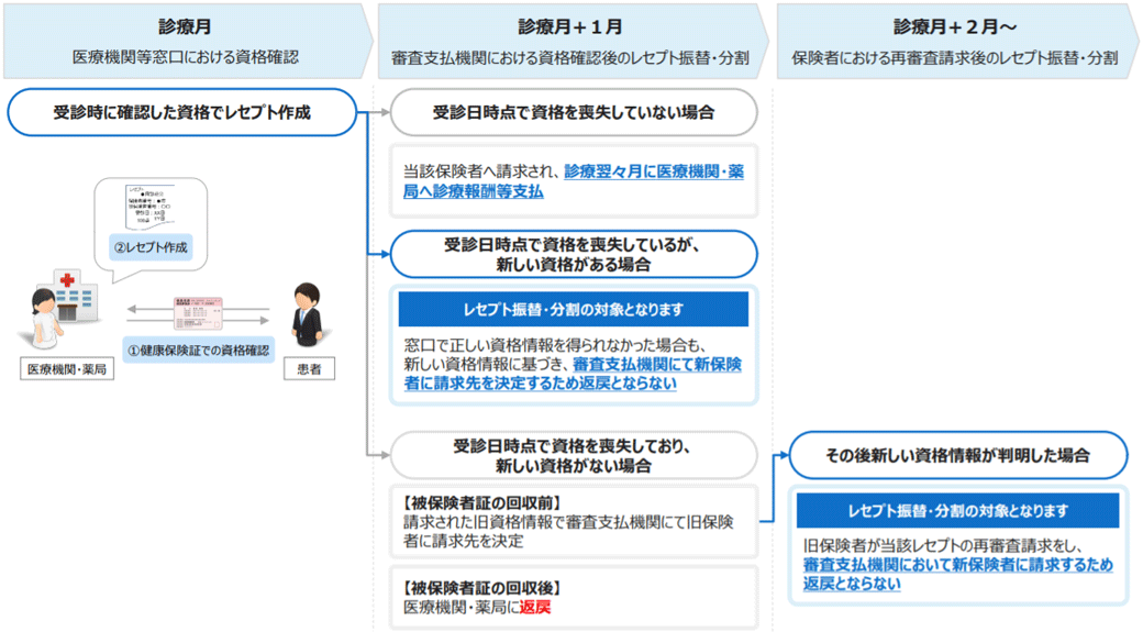 出典:厚生労働省「レセプト振替・分割に係る概要」(https://www.mhlw.go.jp/content/10200000/000836159.pdf)