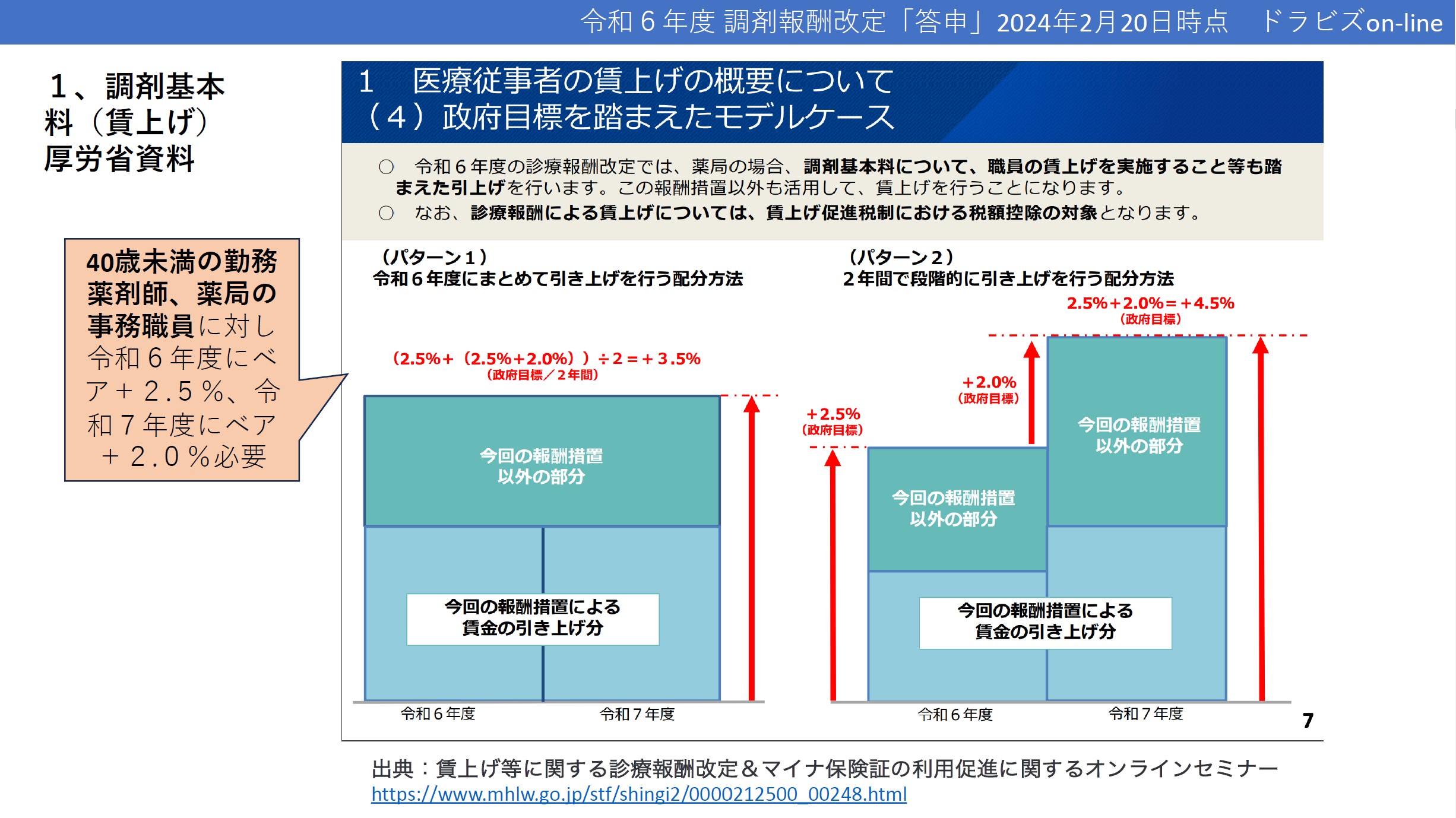 令和6年度の診療報酬改定では、薬局の調剤基本料について職員の賃上げを踏まえた引き上げを行います。