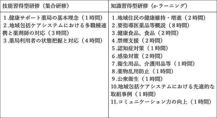 前述の通り、研修実施機関が開催する「健康サポート薬局研修」を受講・修了した薬剤師の常駐は認定の必須条件です。研修の内容は「技能習得型研修」と「知識習得型研修」に分かれています。