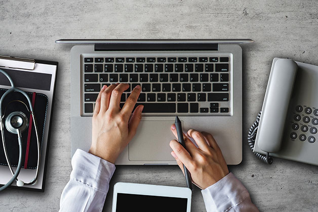 電子カルテは診療の現場で操作するシステムです。医師は診察内容の入力や過去の診療記録などの確認を行い、看護師はバイタル測定値の記録や処置内容などの入力を担当します。
