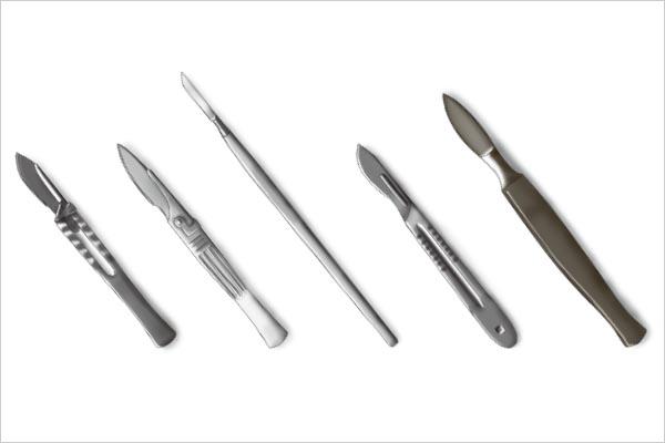 昭和初期頃まで、大病院には研磨室と呼ばれる道具の手入れを行う工房があり、注射針やメスを研いで消毒するための研磨職人が常駐していたが、時代の移ろいとともにメスの形態も進化。刃部と柄部が一体化したメスから、研磨のいらない替刃型メスへ、そして衛生上の理由から使い捨てメスが主流となった。さらに、高周波電流を利用して切開や止血をする電気メスや、レーザー光線を使用するレーザーメス、機械の先端から超音波振動を出して組織を凝固切開する超音波メス、マイクロ波を照射して止血や凝固をするマイクロ波メス、ジェット水流の水圧で血管や神経を傷つけず組織だけを除去するウォータージェットメスなど、様々な医用機器のメスが多用されてきた。