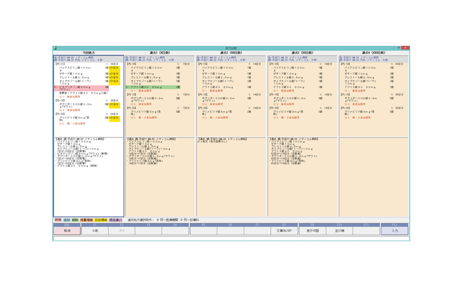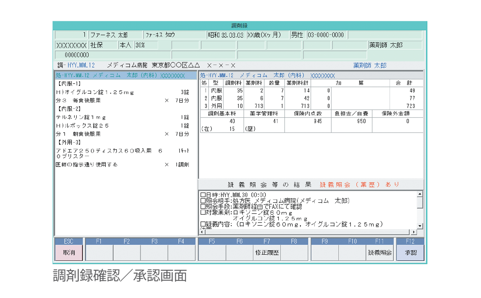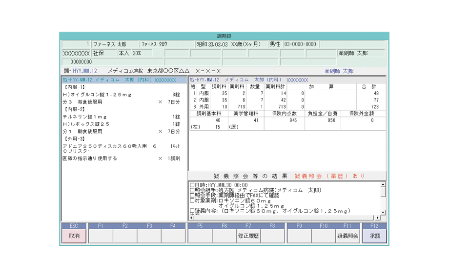 - 用量チェックや相互作用チェックなど処方監査に係るチェック結果は、医薬品の電子添文等の公知の資料に基づき参考情報としています。調剤に係る決定は、薬剤師の判断で行ってください。