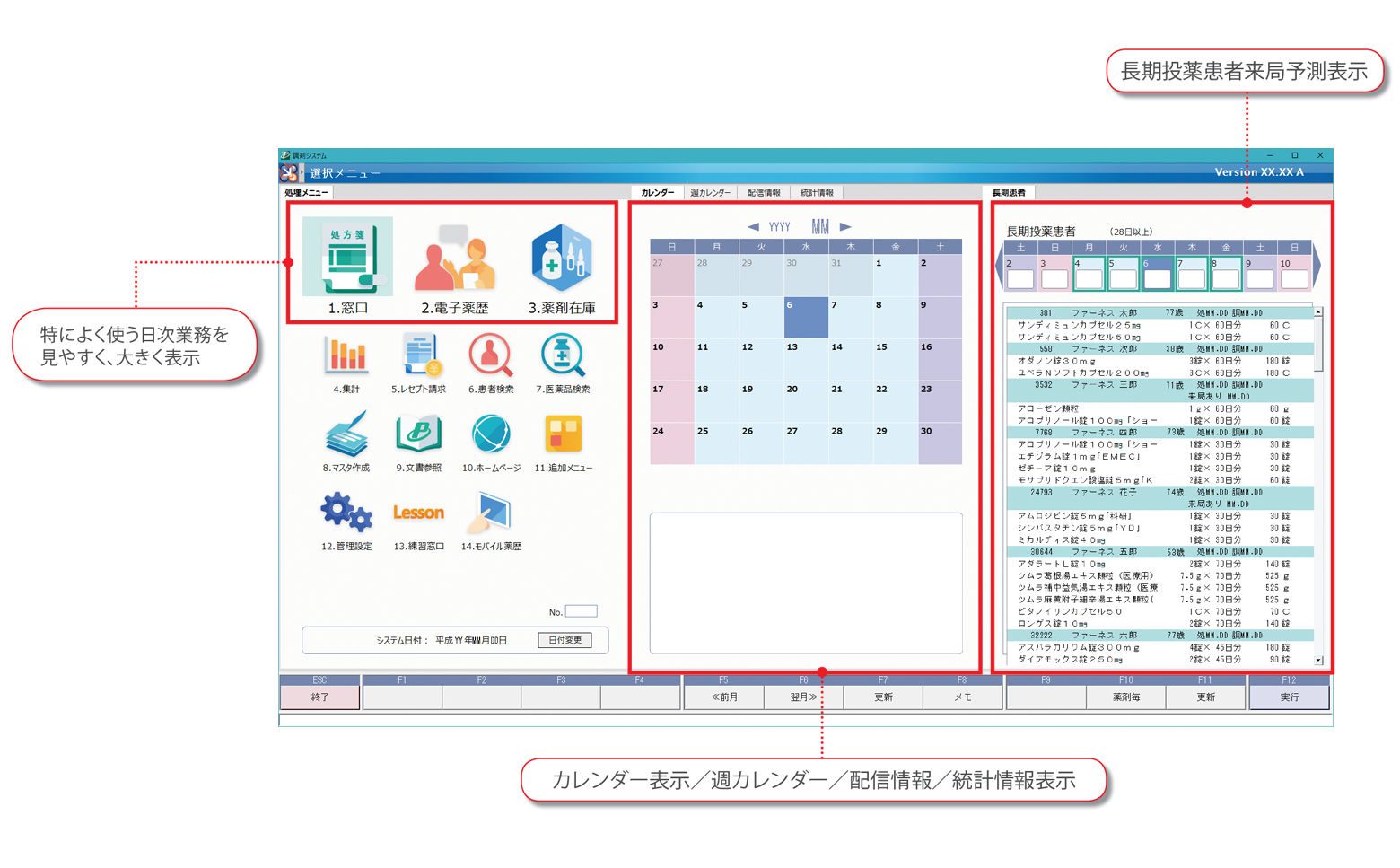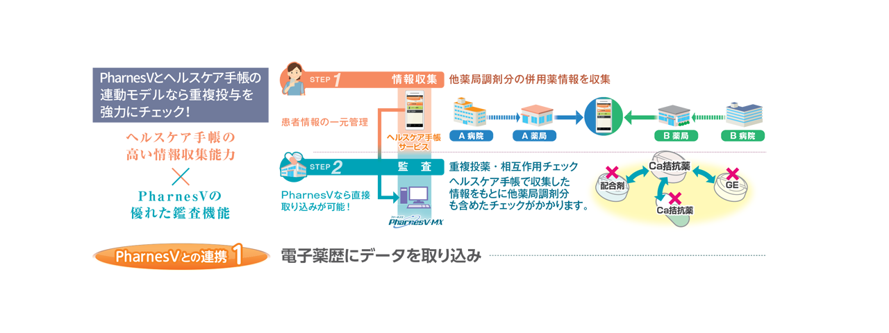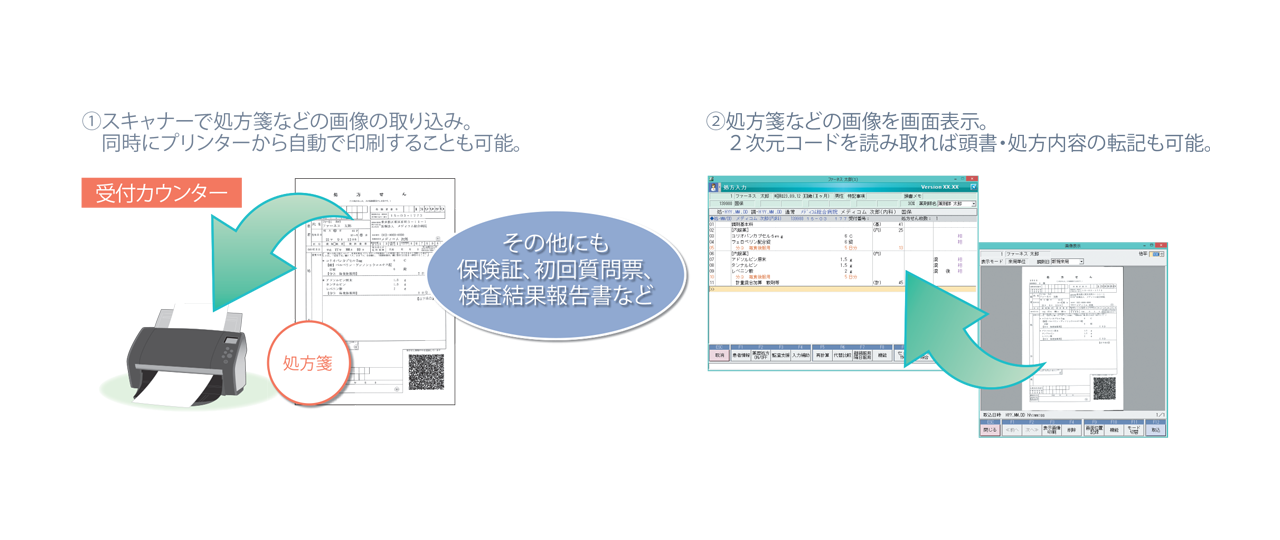 PharnesX-MXはレセコンの機能と電子薬歴の機能の両方がご利用できますので、ご利用のシーンに合わせた運用を支援いたします。