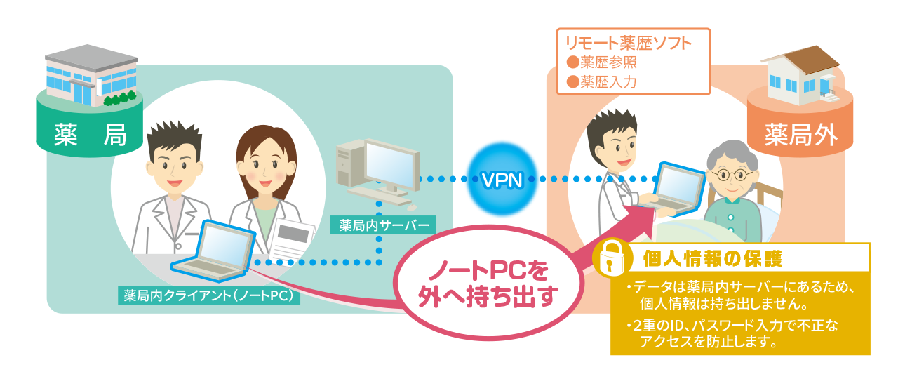薬局外から在宅患者さんの薬歴を入力、閲覧できますか。