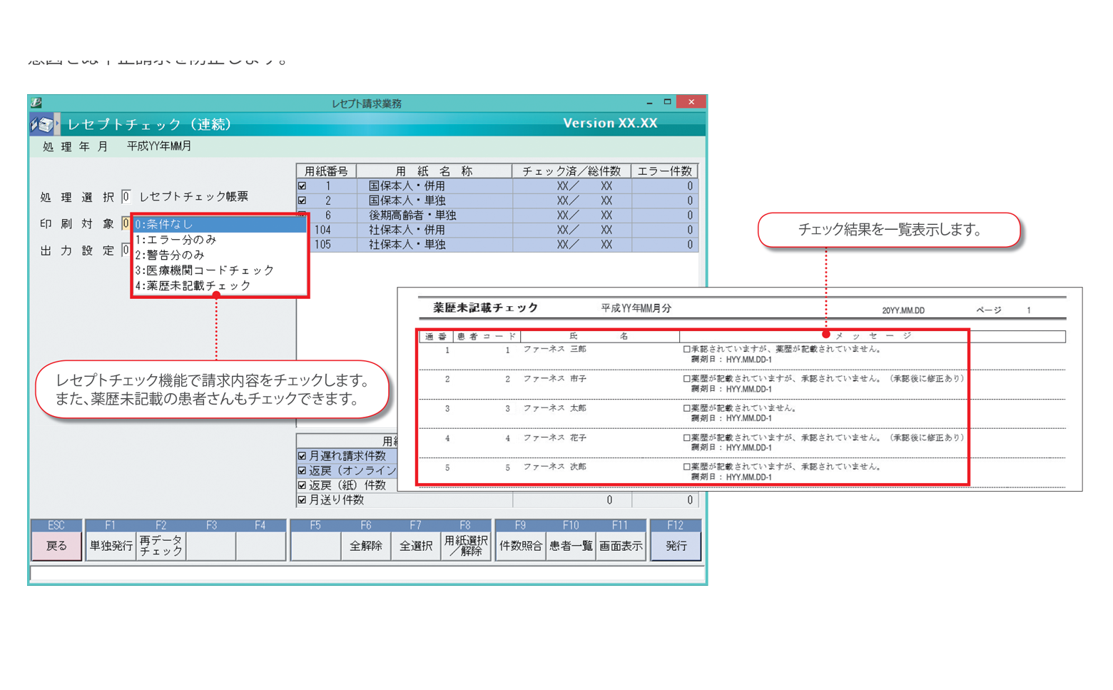 幅広い監査チェック機能を標準搭載、日々の薬局業務のミスを防ぐ