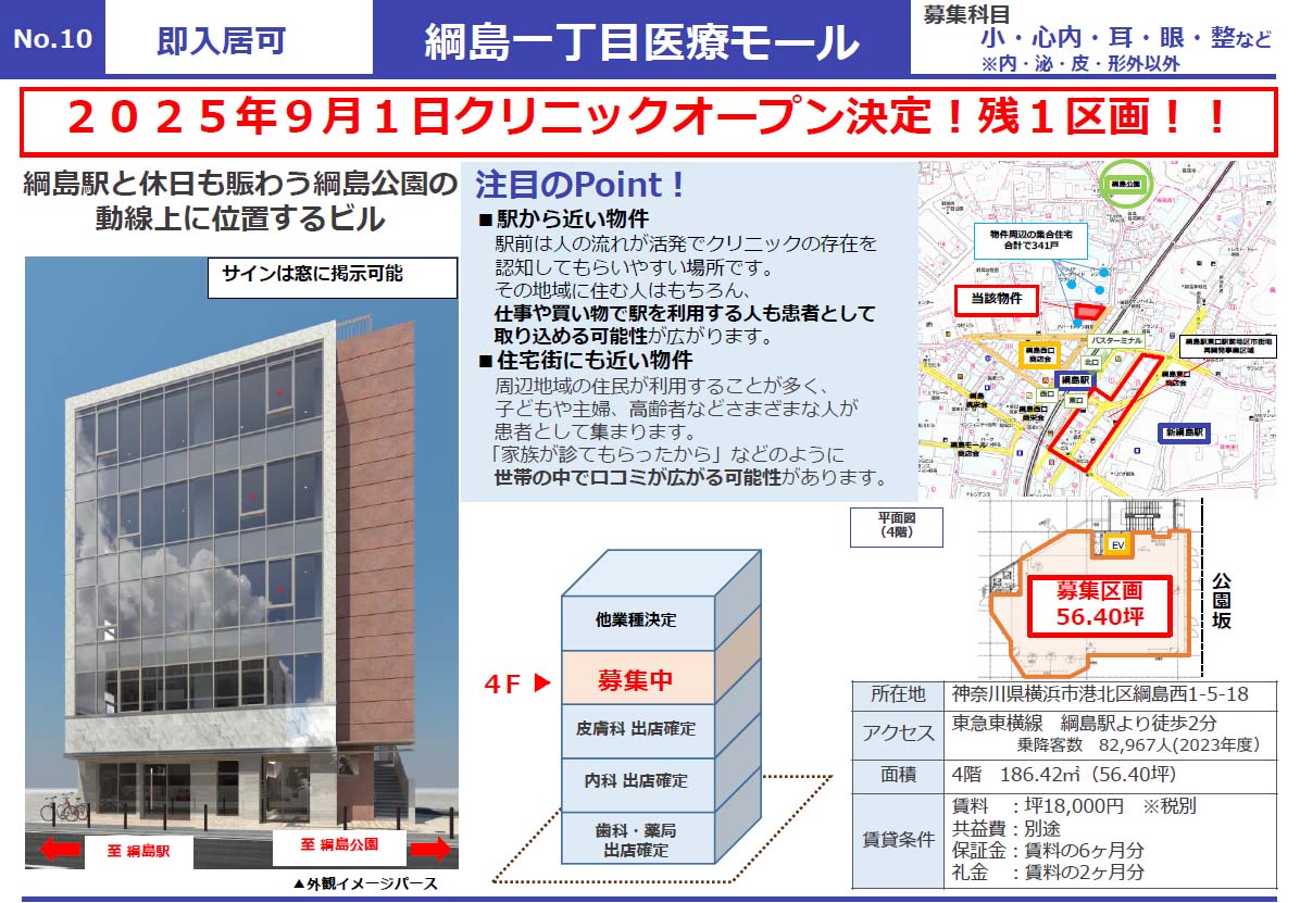 NEW 更新 承継 所在地 標榜科目 売上/年 利益/年 譲渡金額 詳細はこちら お問い合わせはこちら NEW 更新 新規 所在地 アクセス 募集科目 月額賃料(税込) 詳細はこちら お問い合わせはこちら NEW 更新 新規 物件所在の都道府県 所在地 アクセス 物件種目 竣工時期 募集科目 面積 月額賃料 PRポイント お問い合わせはこちら NEW 更新 承継 所在地 物件種目 複合ビル医療ビルテナント商用施設内テナントビルテナント貸テナント医療モール商業施設内医療モール戸建て借地土地長屋 標榜科目 売上/年 利益/年 患者数/月 譲渡金額 運営形態 PRポイント お問い合わせはこちら